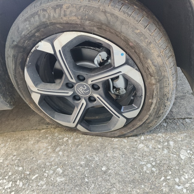 昨天,我开着我心爱的元小迪,在办理业务的路上,开车开到了坑里面,结果车胎爆了,这是一个悲伤的故事