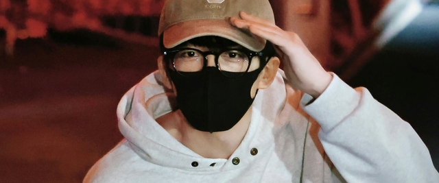 黄子弘凡穿着宽松白色卫衣,黑色短裤,手里提着一顶棕色鸭舌帽就这样跑出来了。