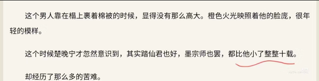 作者又在翻看了好几遍,发现在楚晚宁闭关之前是10岁,但楚晚宁闭关的那5年算是白过,为了算出他到底几岁,我们可以倒退:墨燃五年后22,那么五年前就是22-5=17岁,五年前楚晚宁还比墨燃大十岁,因此可得楚晚宁五年前是17+10=27岁,因为白过,所以他五年后还是27岁,而为了解决作者的问题,我们应该用27-22=5岁,所以楚晚宁比墨燃大5岁!