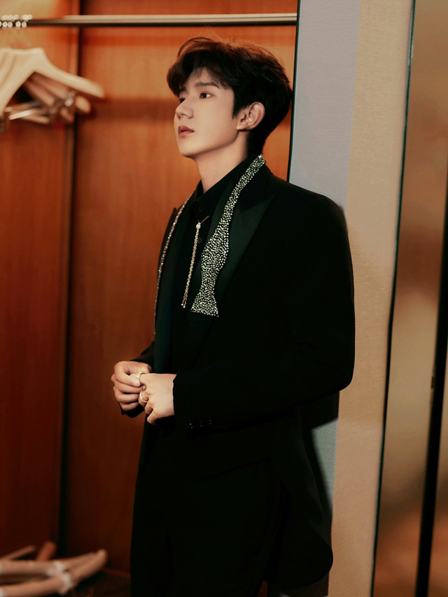 王源一身笔挺名贵的西装走了进来,身材均匀修长。