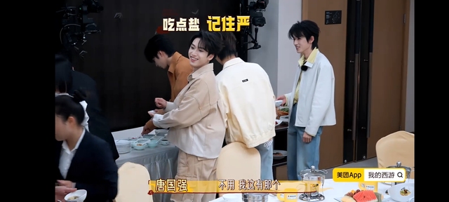 贺峻霖这边打碟刚完事儿,就晃悠到唐国强老师旁边问。