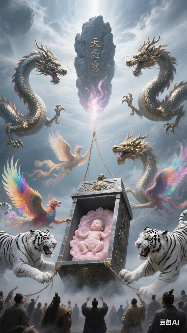 就在此时,石棺微微颤动,棺盖缓缓开启,刹那间,一道刺目的仙光乍现,光芒中,众人隐约瞧见一个粉雕玉琢的娇婴,这一幕,宛如一场绮丽梦境的开篇。周围的神兽们似乎也感受到了什么,原本威猛的神态变得柔和,它们静静地凝视着石棺中的婴孩。