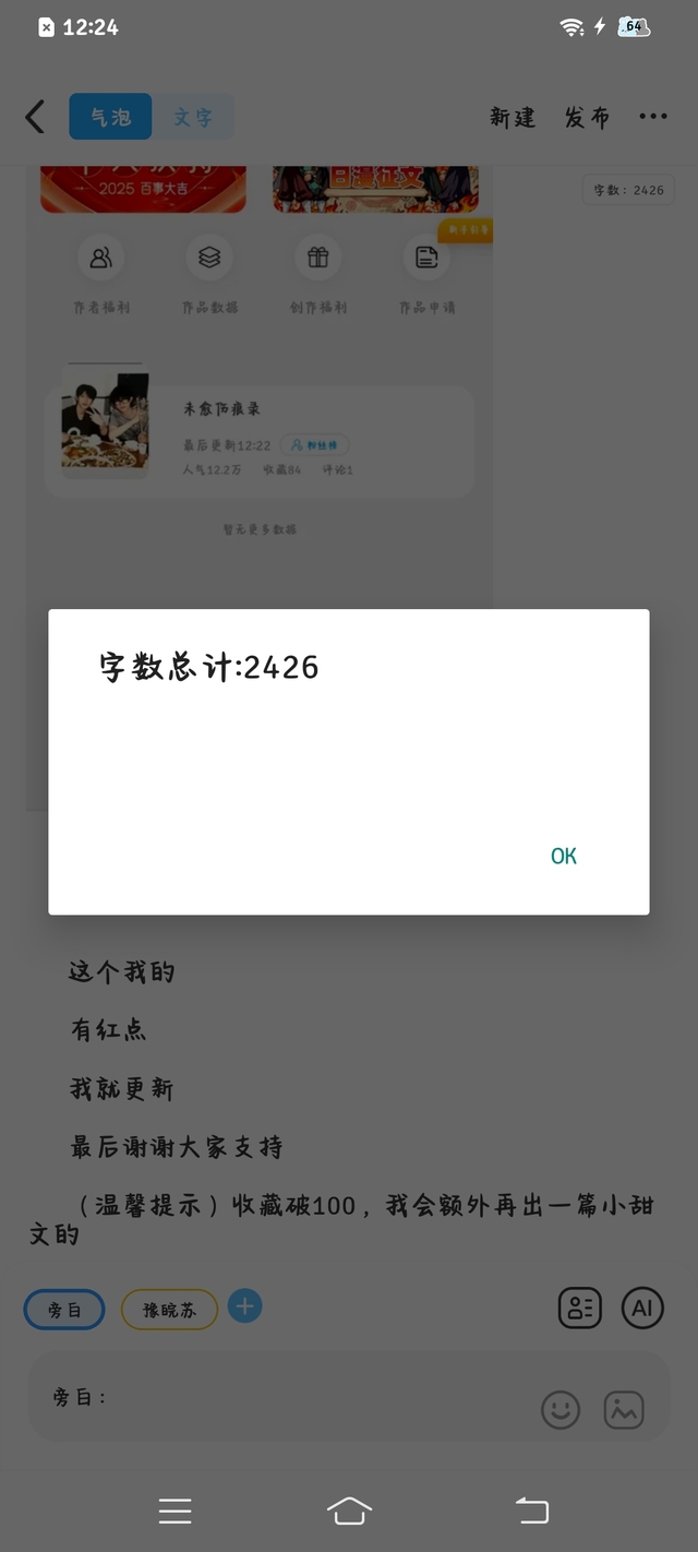 (温馨提示)收藏破100,我会额外再出一篇小甜文的