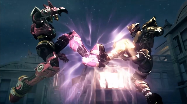 狮王被这突如其来的话吸引了注意力,向后一看,只见已经武装变身的天雪与金狮已经展开了战斗。