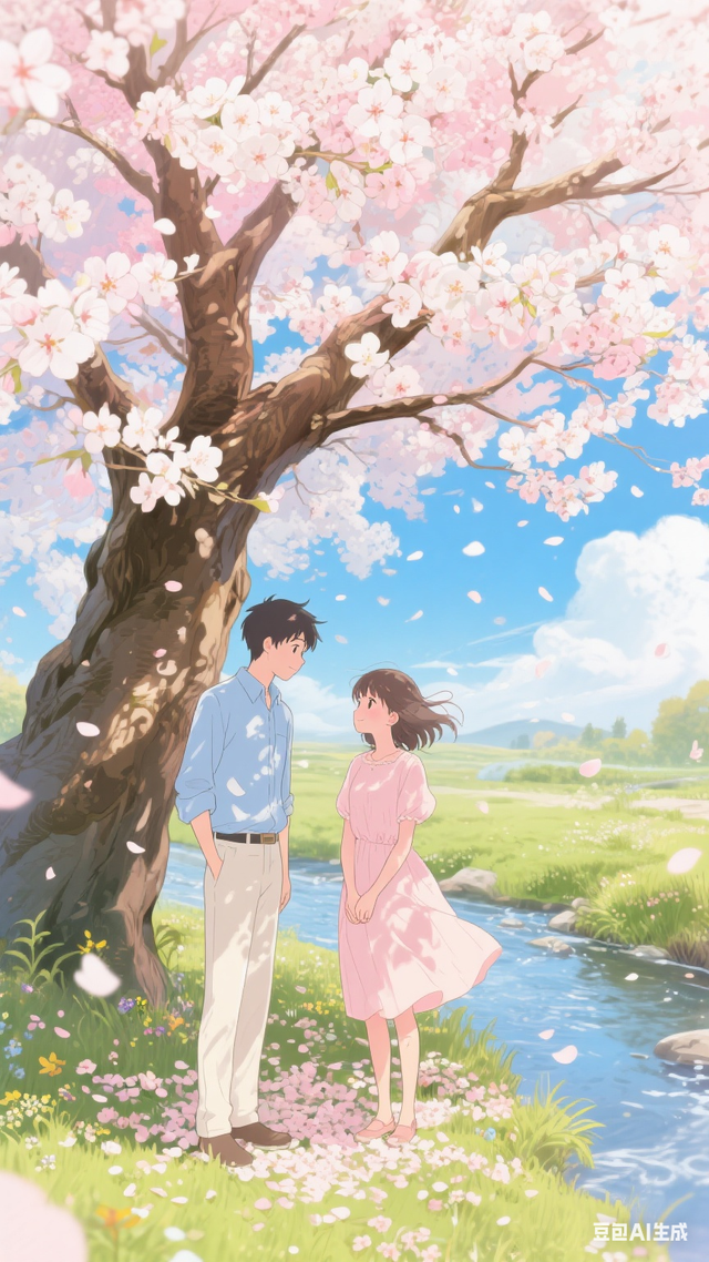 我鬼使神差地走过去,轻轻坐下。或许是感受到身旁的动静,她抬起头,对我露出了一个灿烂的笑容。那一刻,我的心仿佛被什么击中了,原本阴霾的天空突然洒满了阳光。就这样,我们相识了,从那天起,这棵樱花树就成了我们的秘密基地。