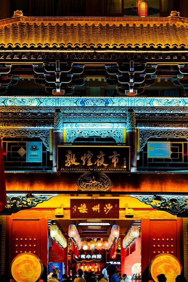 敦煌夜市被千万盏灯笼点亮,宛如沙漠中的一片星海。
