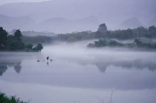 湘江的雾气中,两人的身影若隐若现,