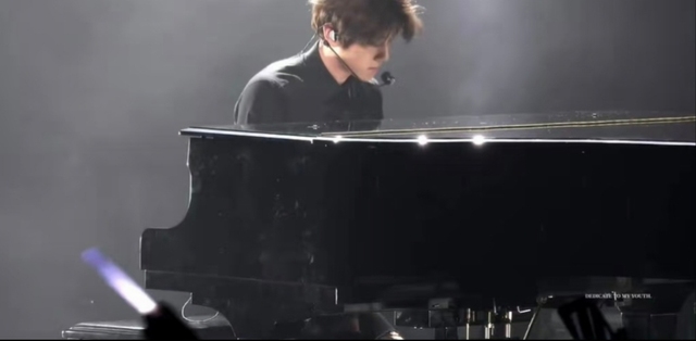 舞台上,鹿晗修长的指尖在黑白琴键上跳跃,温柔的旋律像流水般倾泻而下。