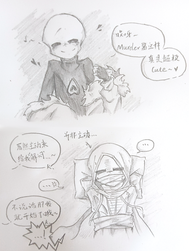 "Murder……是做噩梦了吗……?"Killer轻轻地问了一句,说完,他担心地伸出手,握住了Murder的左手。