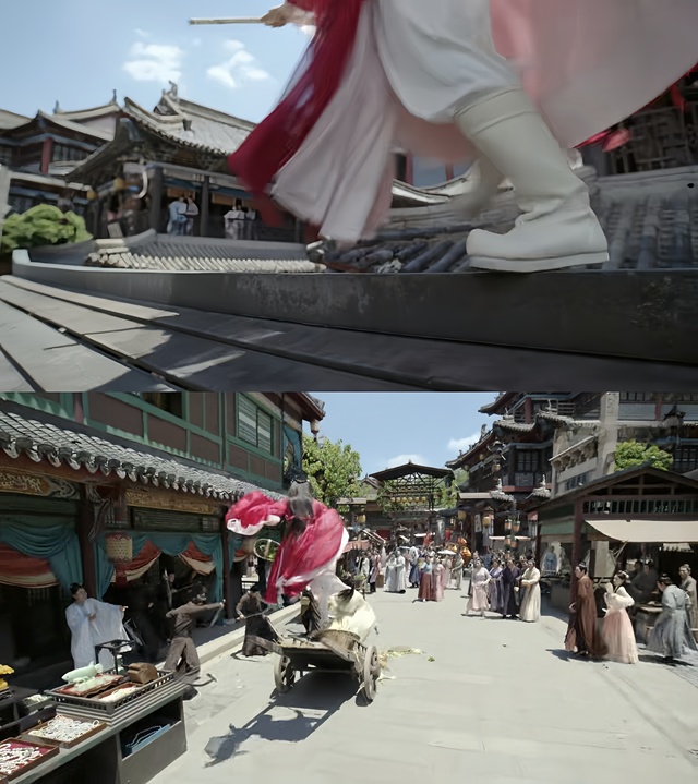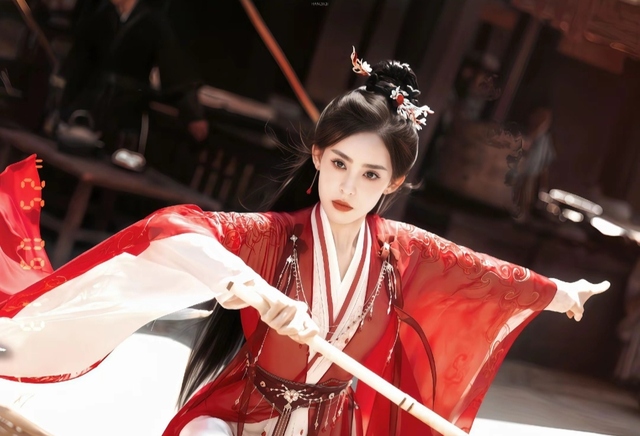 那些黑衣人挥刀乱斩,将他掷来的瓜果蔬菜劈得四处纷飞。就在此时,不远处的屋顶上,一道红影翩然而至。那是一名身着红衣的女子,眉眼间似有剑气凛然,整个人如同一柄出鞘的利剑,锋芒毕现