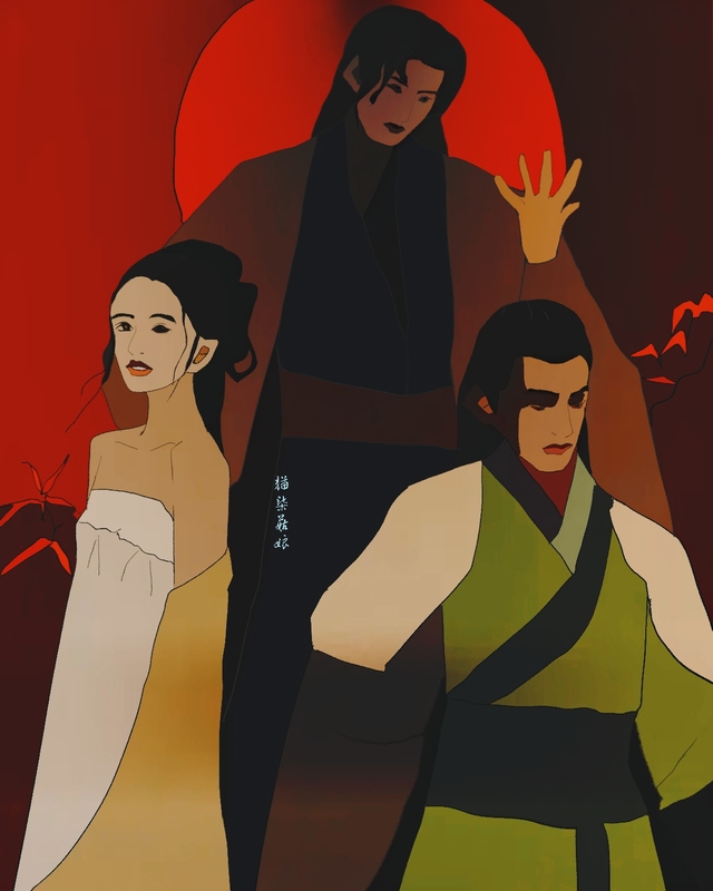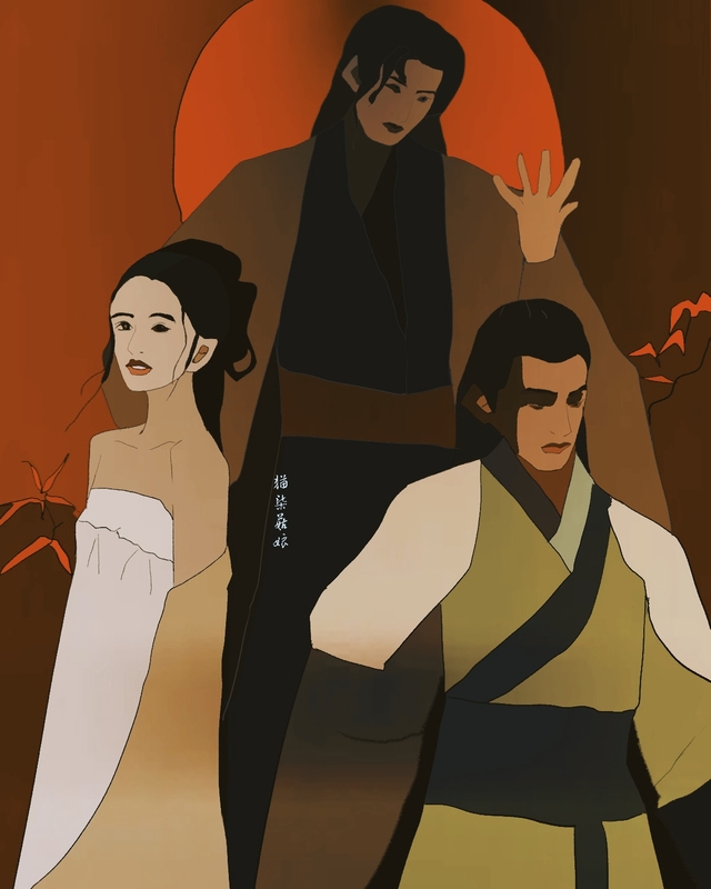 他望着悬崖下,那一双纠缠的影子摔落崖底。
