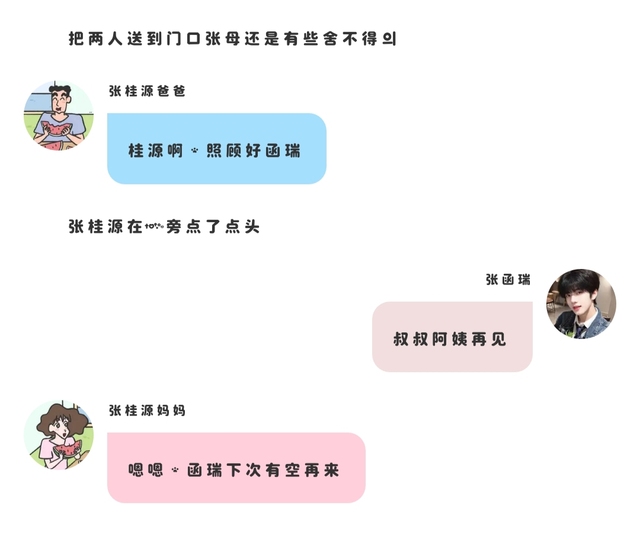 下车后张桂源牵起张函瑞的手晃了晃 笑着说