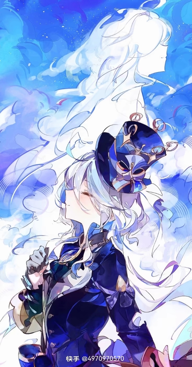 芙宁娜从远处的一棵树身后缓缓走出,她身上的华服跟鲛玥一样,只是她的是黑色的,鲛玥是白色的(深海来信的华服,如果不知道的,就看看第四章的图片)。温柔的看着鲛玥。