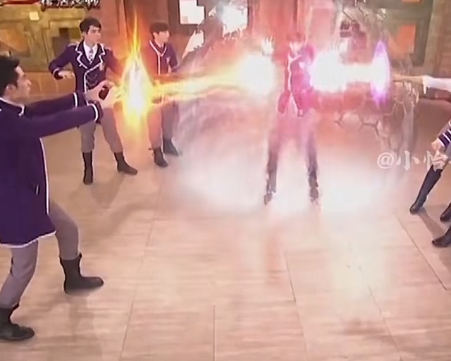啊诺扮演欧趴我,现在, 把十之星带给你们 跟我来 (走几步)暴雷术