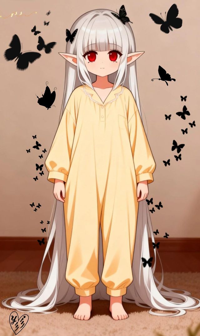 她站在镜子前,小小的身子裹在不合体的布料里,配上那头长得不可思议的银发和那双纯净又妖异的血眸,呈现出一种极致的反差——脆弱与古老,纯真与妖异,完美地融合在这个小小的身躯上。