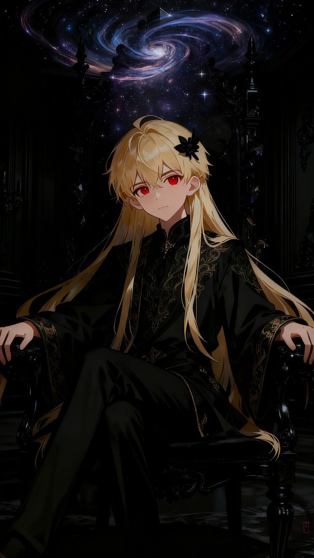 他的发色如暗夜中流淌的熔金,闪耀着内敛而尊贵的光泽。一双赤眸,如同最上等的鸽血红宝石,深邃、威严,蕴含着足以焚毁世界的强大力量与历经亘古的沧桑。