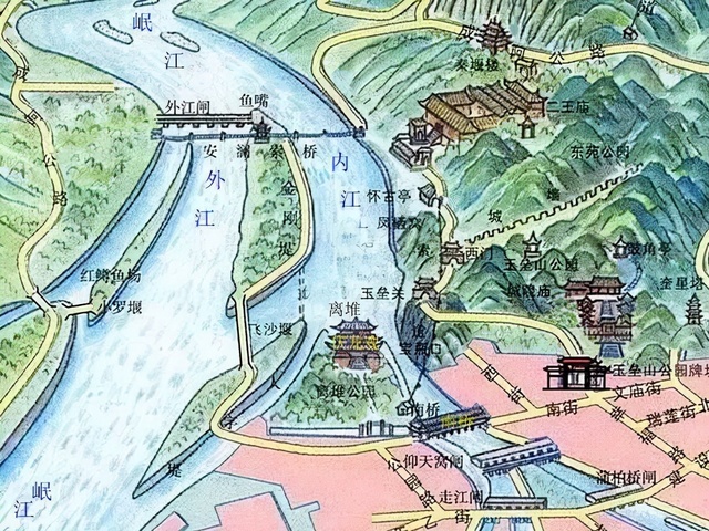 - 都江堰示意图:可以清晰展示都江堰的结构,如鱼嘴、飞沙堰、宝瓶口等,便于理解其防洪、灌溉的原理和作用。