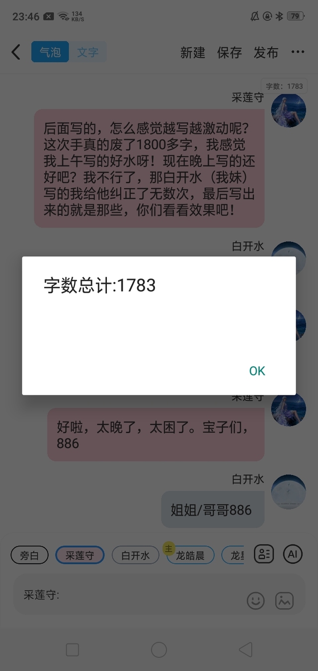 采莲守嘿嘿,我现在再说一句,就1800字啦!真的真的886