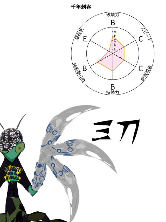 这时候穿着黑衣服黑帽骷髅头的巨型螳螂出现似乎比黑凶基同高但大了一点