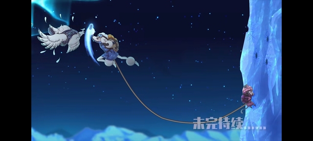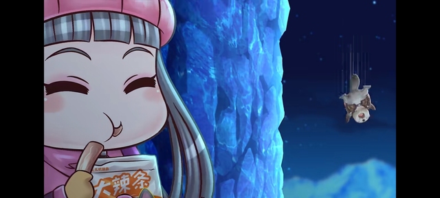 在洋仔对无赖雪喵队友太坑吐槽话间 最上方在冰洞睡觉的豹三角军大衣上搭拉掉了一个莫名其妙跟着的「箭」碎片掉落声音像是滑落的刃影 正好在深渊不见底逮着了羊仔这个落脚点