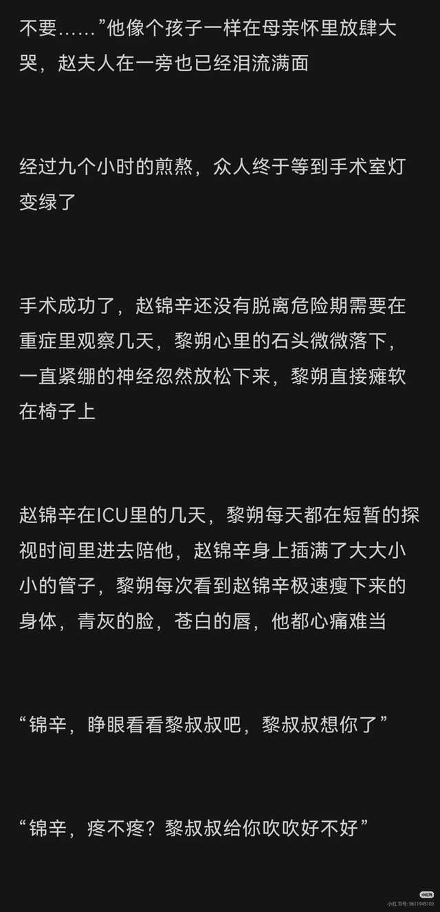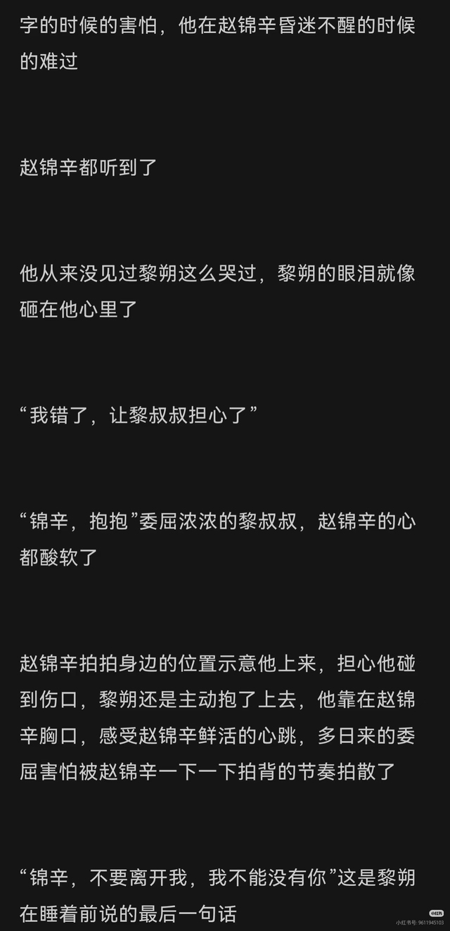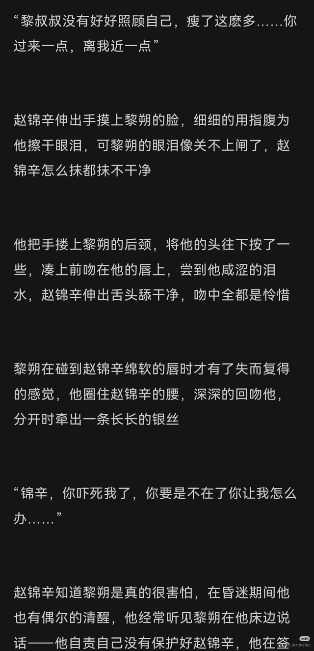 纪姩妤什么赵锦辛失明,黎朔默默捐献眼角膜还躲起来,结果被赵锦辛误会,重逢后还中伤他??? 什么赵锦辛失忆,有个冒牌货拿ls的玉佩伪装自己才是赵锦辛的爱人,赵锦辛居然还信了,周围所有人,他的父母甚至邵群都告诉他他被骗了,他都坚定地不信,就信冒牌货???然后语言中伤还想暴力殴打黎朔??? 这种文居然都能有人推,除了主角的姓名还是赵锦辛和黎朔,和他们两个本人有什么关系???原著里赵锦辛连对黎朔大声说话都舍不得,有些同人文别太离谱,纯粹夹带私货是吧?贬低黎朔,赵锦辛也是被傻得要命!