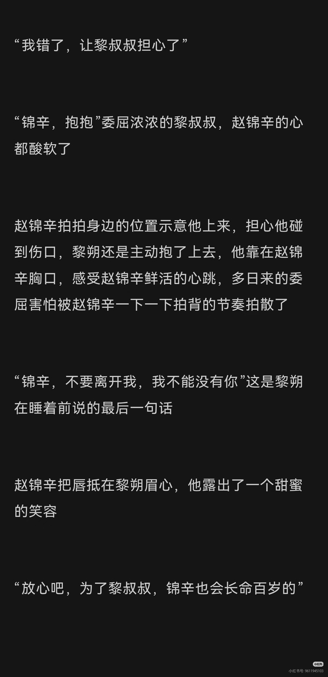 赵锦辛就像这上面说的,我可要长命百岁然后陪着黎叔叔呢!