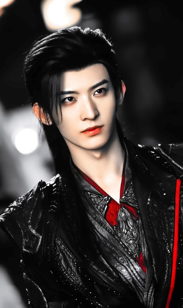 只见被挡回去的寸指剑被飞身而来的人接住,来人一身黑色劲装,亮面的软甲裹着肩背,走动时泛着冷光,像是蛇鳞贴在皮肉上,袖口的暗纹绣缠成兽形,顺着他抬手的动作蜷成道冷影。腰封嘞的紧,把宽袖收成利落的弧度。银柳钉镶嵌在衣摆,随着他的走动发出细碎的响声。