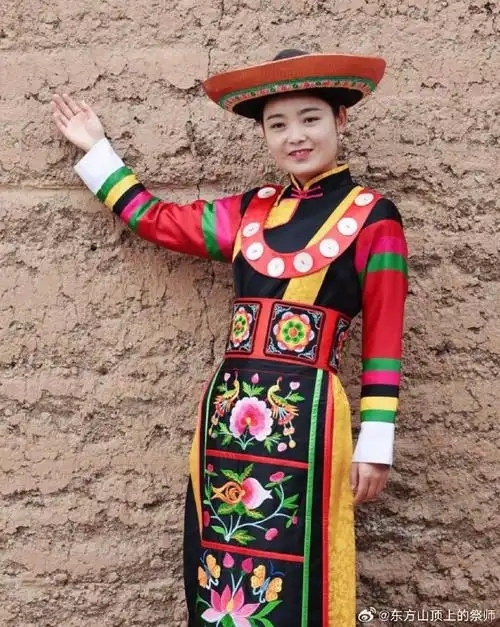 - 男性:穿绣花高领白色短褂,黑色或蓝色长裤,戴织锦缎檐帽。