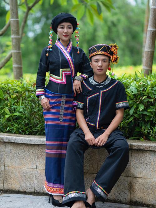 * 男性服饰:相对简单,多穿黑色或青色无领对襟短上衣,下穿黑色大裆裤。头缠白色或黑色布包头。现代日常生活中,男性多穿着汉装。