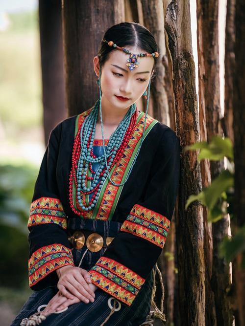 - 女性:穿筒裙、短上衣,饰以贝壳、银币、彩珠等,颈挂多串项链。服装色彩以黑、白、红为主,图案多为条纹或几何形。