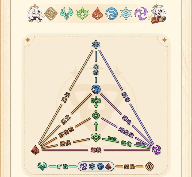 不同元素之间的交汇,可触发出不同的反应(★下方有讲解,也可参考以下示意图)。