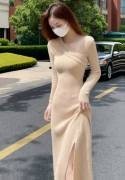 鉴于长沙多变的天气,她选择穿了一件长款针织裙