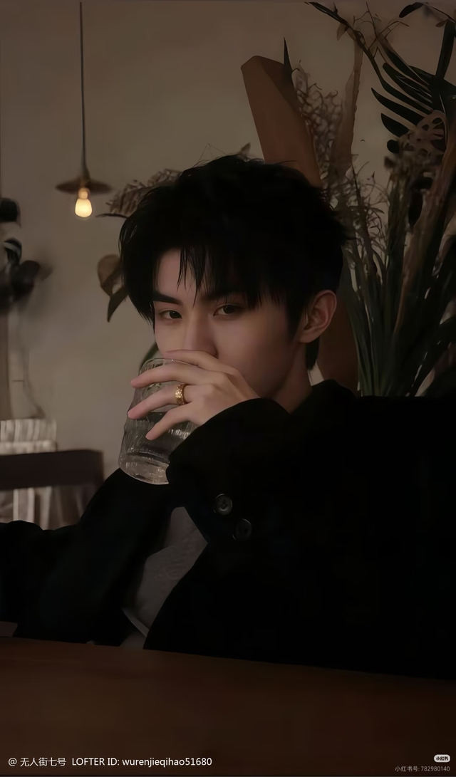 是初冬的雨夜,玻璃上蒙着层薄雾,暖黄的壁灯把他的轮廓浸得很软——他穿了件黑色西装外套,袖口的纽扣泛着哑光的银,指节上套着枚金色戒指,是上次演出主办方送的纪念款。听见门响,他抬眼望过来,睫毛上沾着点窗外的湿意。