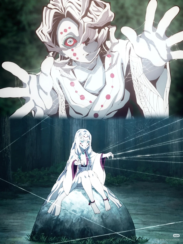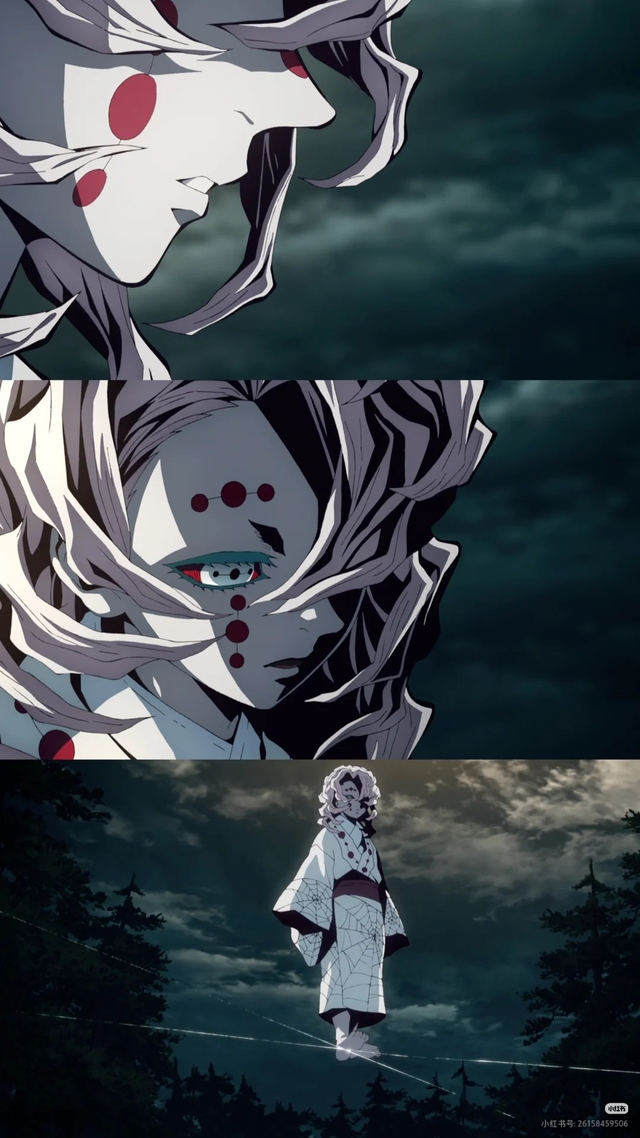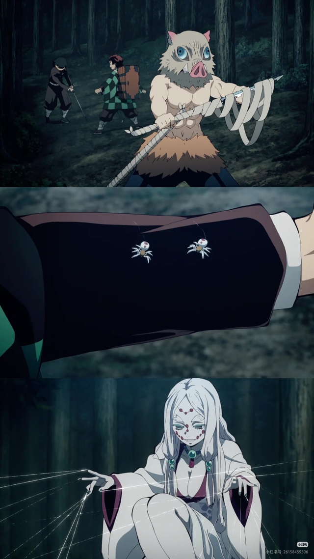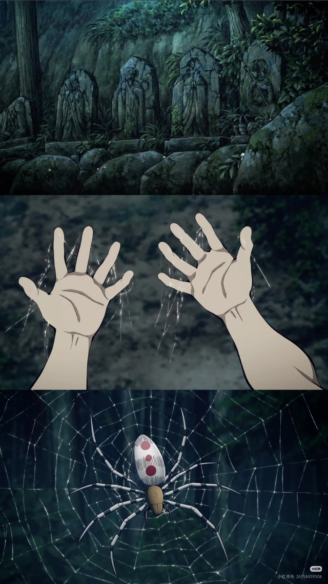 - “欢迎来到我的‘家庭’……”蛛腹鼓动,笑声黏腻。下弦之五·累现身,八臂各执丝,编织着名为“爱”的囚笼。
