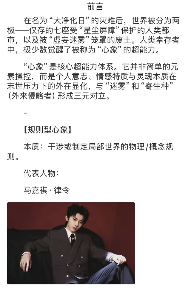 马嘉祺没有回答。他的目光穿过目镜,看向三公里外那片被淡灰色迷雾笼罩的废墟。那不是自然形成的雾,它像有生命般缓慢蠕动,吞没光线,扭曲空间——虚妄迷雾,人类最深的噩梦。