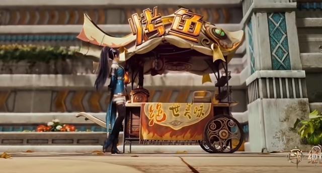 此时,有人来到烤鱼车这里。排队的人也为她让出了一条道路