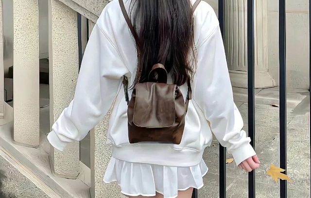 她今天穿了件白色的卫衣和同色系的短裙背了个棕色的小包 有几根碎发因跑的太急而被汗水粘在了脸上
