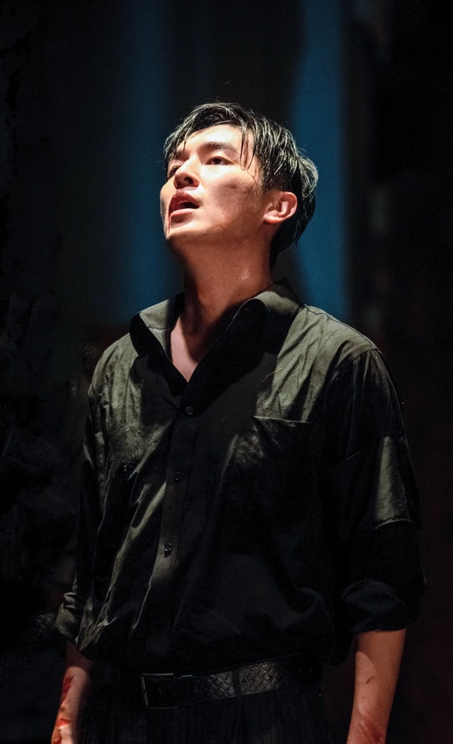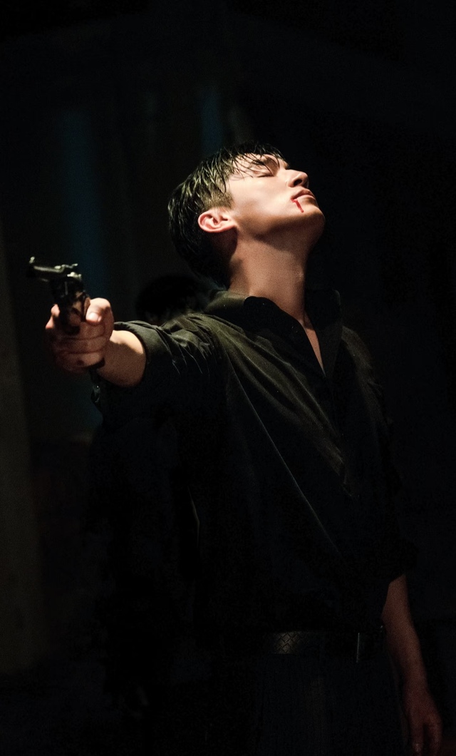 他双手自然垂下,衬衫渗出血也浑然不觉。露出的锁骨上沾着暗红血渍,他歪着头,嘴角还挂着半分没褪尽的笑,眼底却一片死寂的疯茫,连呼吸都带着滞涩的沉