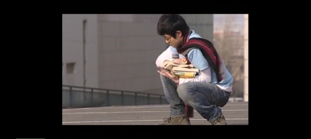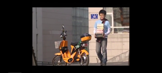 正打算放在后座上 用绳子捆绑起来 但是碍于书又高又多 直接散落在地上了 虽然有些不耐烦 但还是捡了起来