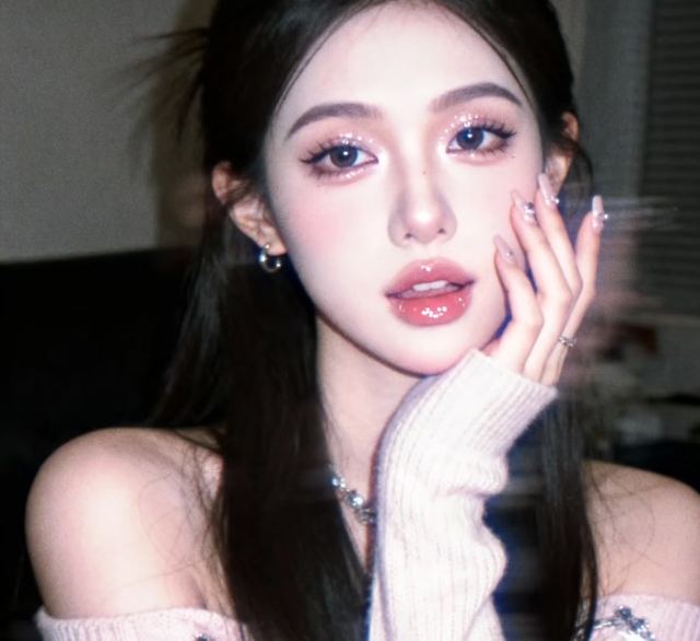 谢昭澜化着精致的亮片妆,黑色皮衣百褶裙勾勒出利落身形,长靴紧裹修长双腿,半扎的马尾用一枚银色发夹随意固定,几缕碎发轻垂胸前。