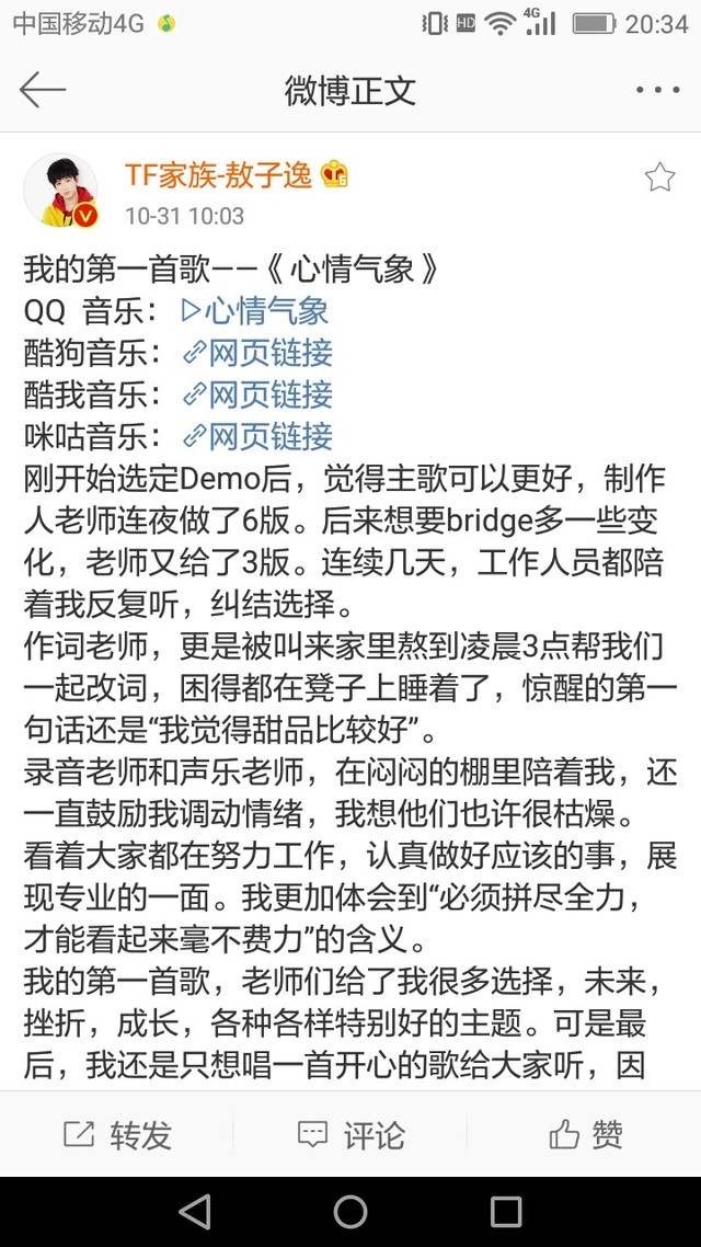 嘻嘻!三爷和霖霖的新歌支持了解一下!很棒哦!霖霖的补发,三爷也补发!加油哦!