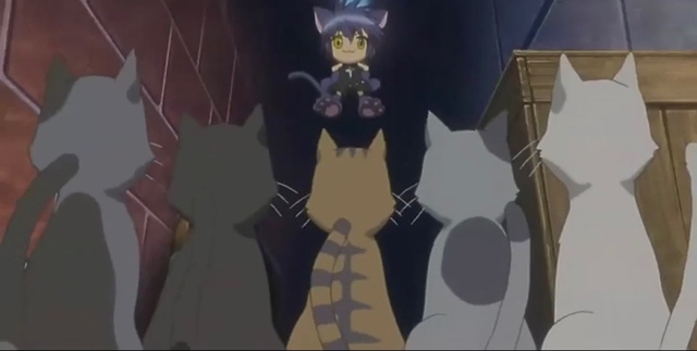 阿夜将袋子抛向空中,其中一只花猫跃空而起将其叼在嘴里随后稳稳落下,小丝不甘心的追在其后