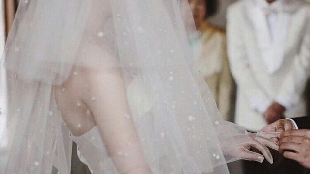 另一边的婚礼现场正在交换着戒指。