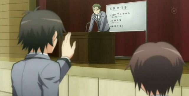 龍套男(主持人)"好了,現在發到大家手裡的資料印著學生會例行活動的詳細內容"