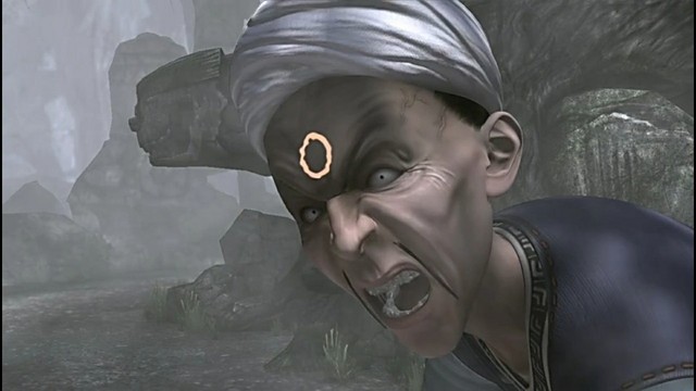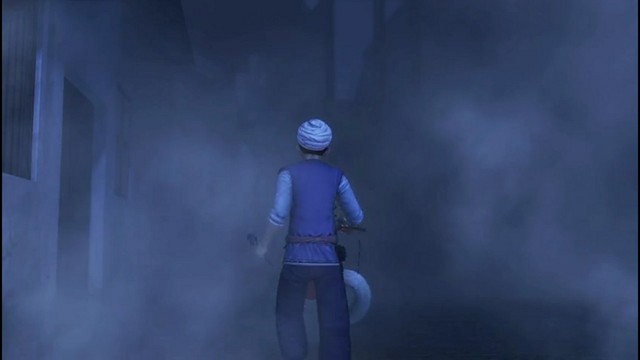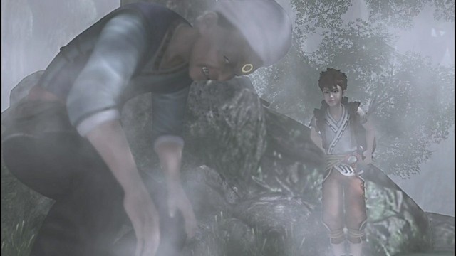 辗迟拼了命的往前跑,一边跑还一边吐槽,于是辗迟被树枝绊倒,而被附身的更夫并不可怜摔倒的辗迟,反而扑向辗迟
