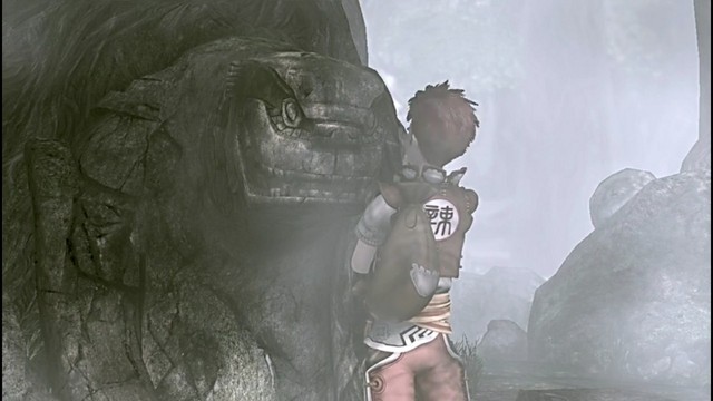辗迟发现了一个乌龟一样的雕像,拿起石头在上面画的两撇胡子,作为路标