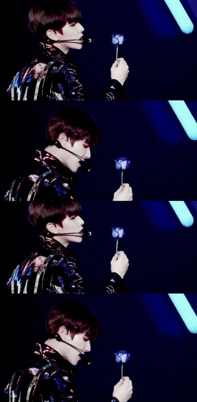 边伯贤拿起身旁的蓝玫瑰