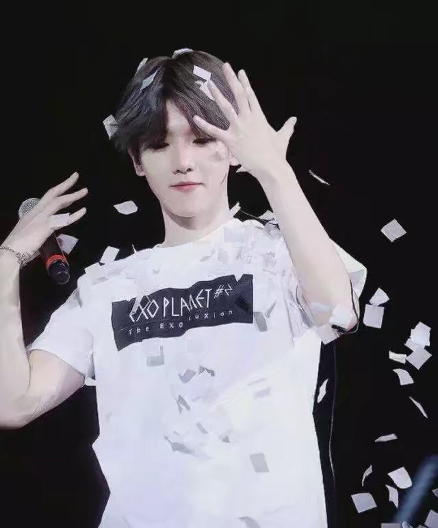 边伯贤像小孩子一样把纸片扬到自己身上