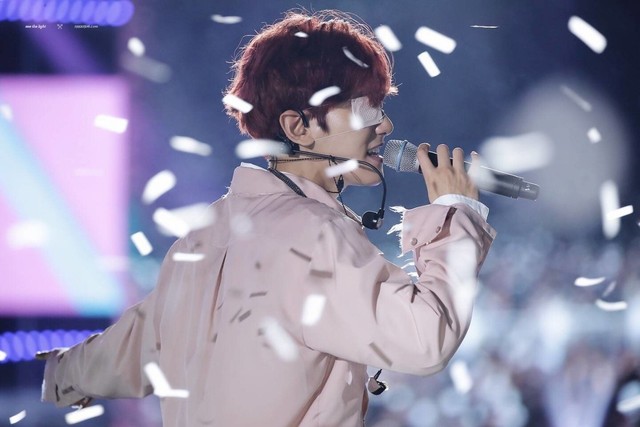 边伯贤一众人表演完后,但是他好像并没有想下台去换装