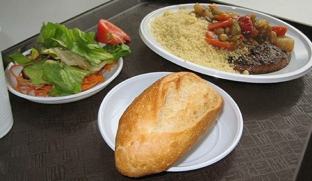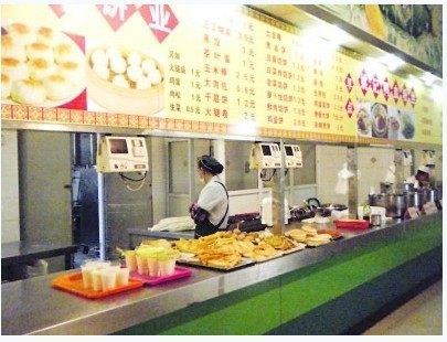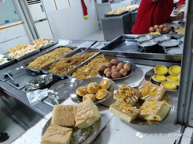 分别买好后来到食堂门口